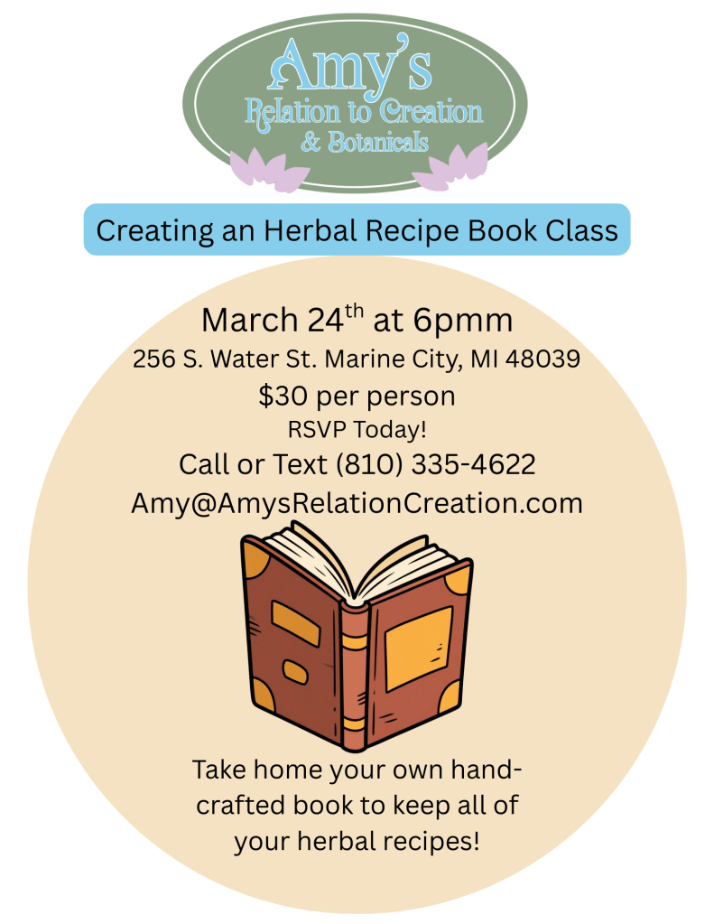 March 24th, 2026 at 6pm – Creating an Herbal Recipe Book Class